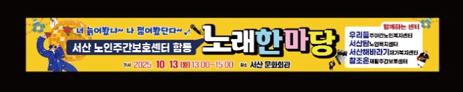 제목 | 서산노인주간보호센터 합동 "노래한마당" | 공지일 | 2025.10.03 |